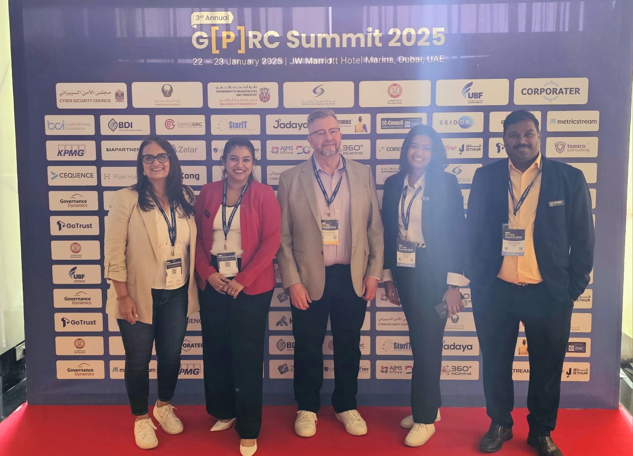 Our Founder & Chief Product Officer delivering a keynote at GPRC Dubai 2025, discussing Cognitive GRC. The session explored how AI-driven governance, risk, and compliance (GRC) frameworks leverage cognitive intelligence to enhance decision-making, automate compliance, and strengthen organizational resilience.